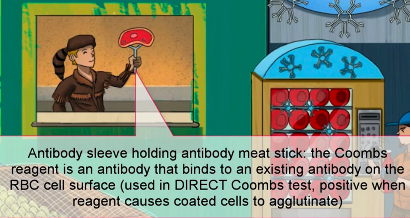 Direct Coombs’ test : 모든 ab에 결합하는 ab를 붙여서 agglutin 형성하면 양성