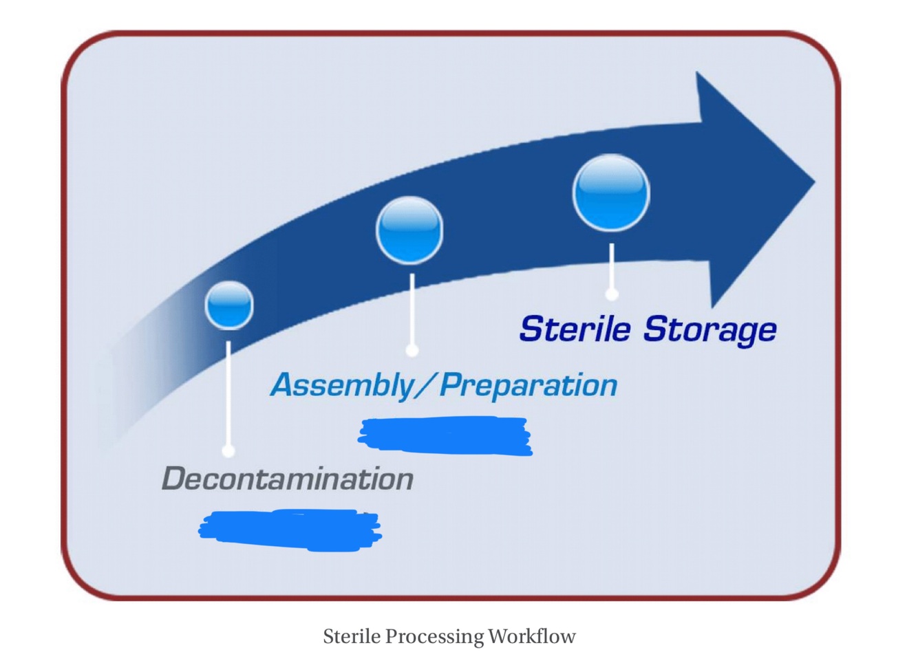 The systematic flow (Decontamination, Assembly/Preparation, and Sterile Storage) can reduce the risk of , or , from occurring