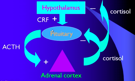 Therefore if cortisol is deficient → no negative feedback loops → increased CRF (hypothalamus) → increased ACTH and MSH → tan skin