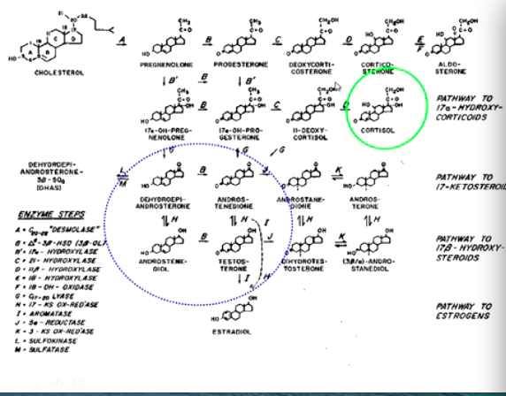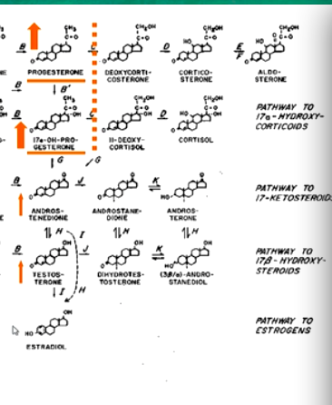 Pregnenolone → progesterone → aldosterone → cortisol → androgens