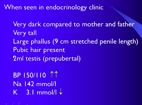 17 OH progesterone is a metabolite of the adrenal gland, suggesting a defect in the adrenal gland, so this kid can’t make aldosterone/cortisol properly.