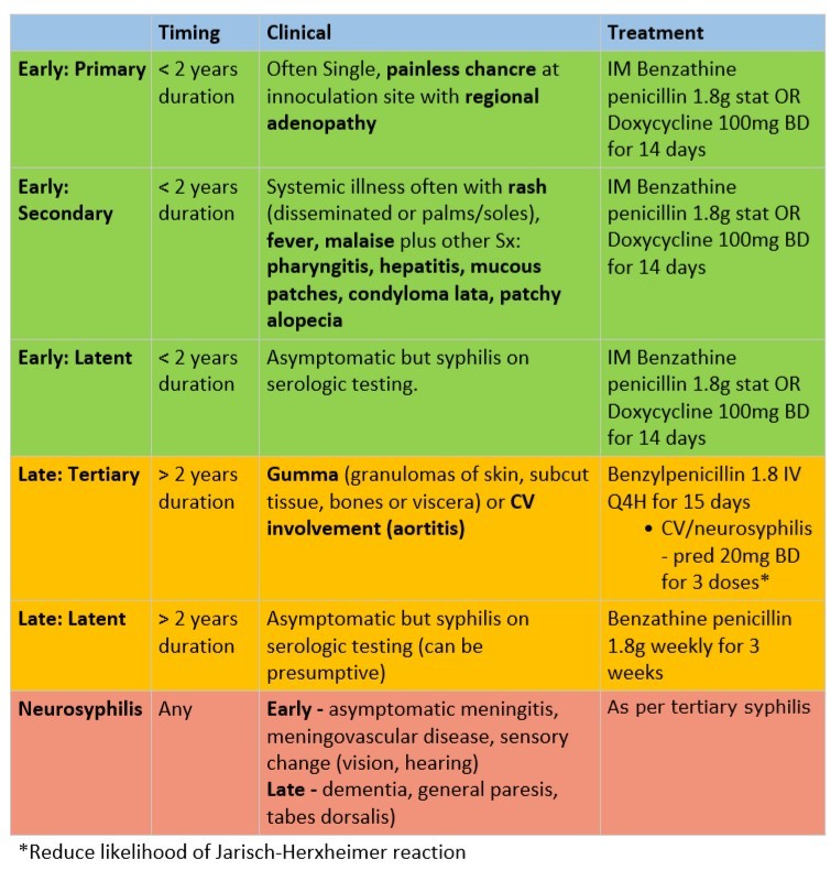 chancre - painless ulcer at the site of sexual contact local non-tender lymphadenopathy often not seen in women (the lesion may be on the cervix)