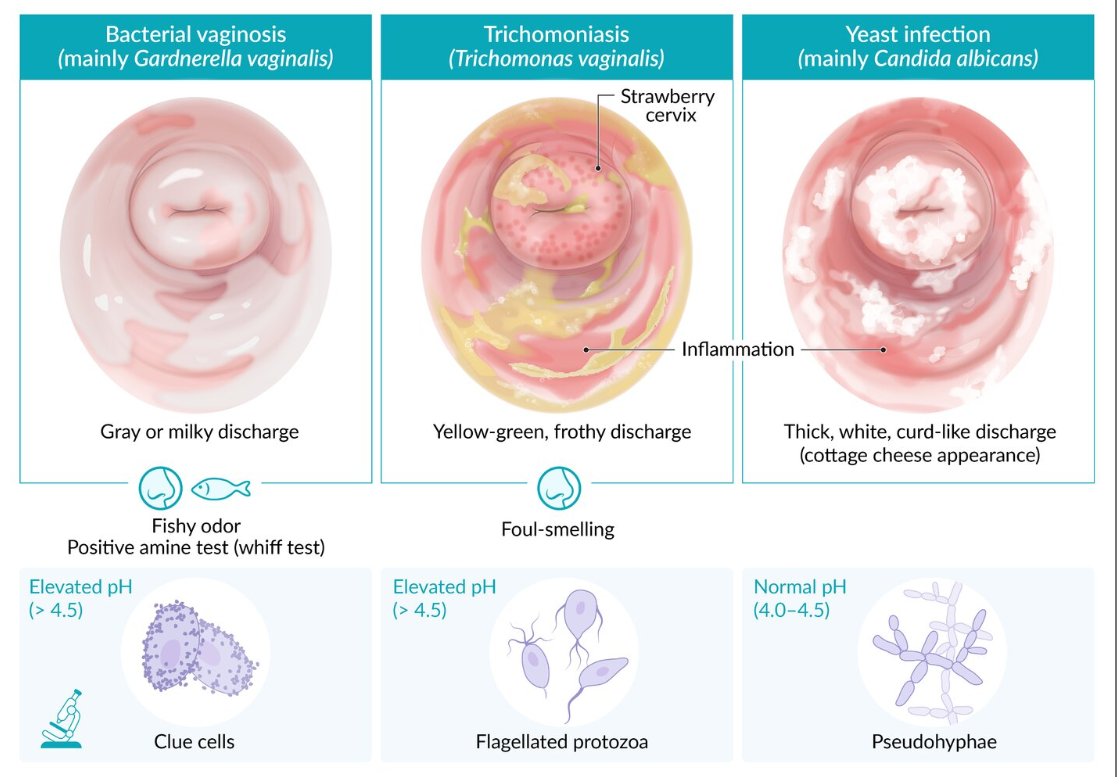 pruritus and dysuria, speculum exam will help you dx with a strawberry cervix and green yellow smelly discharge