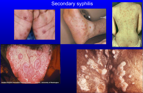 How does secondary syphilis present?