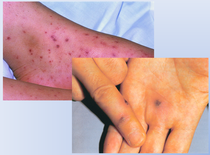 Rash: Secondary syphilis; Rx: benzathine penicillin 3x (once a week for 3 weeks) or doxy for 1 mth