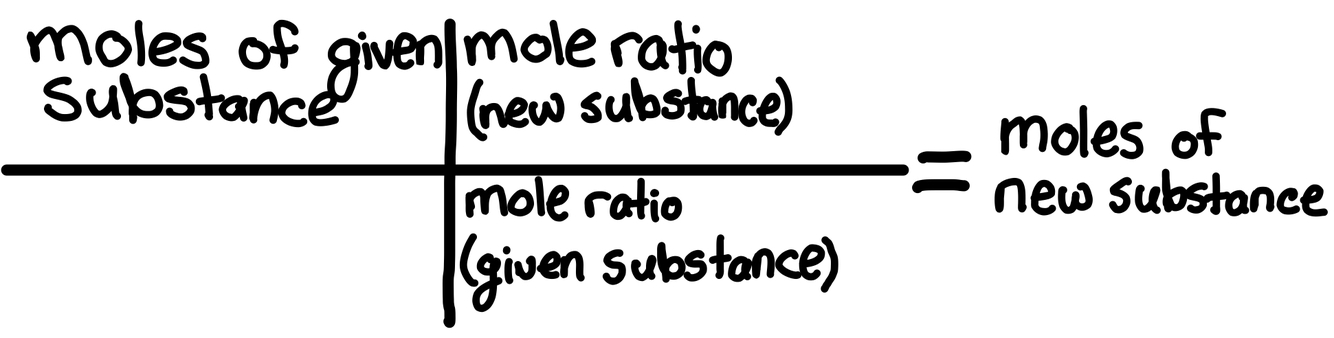 conversion factor that relates the amounts in moles of any 2 substances involved in a chemical reaction