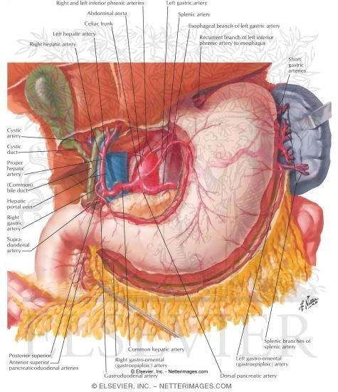 Describe the arterial supply of the stomach