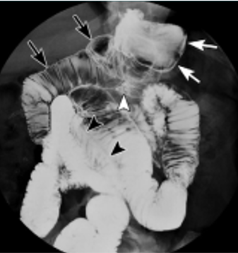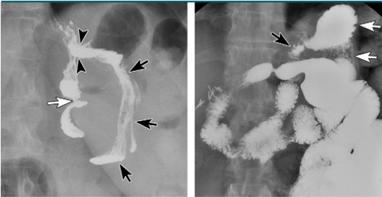 straight arrow = abrupt cut off of the 3rd portion of the duodenum