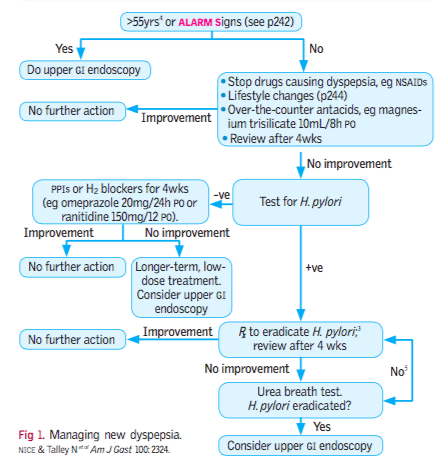Anaemia Loss of weight Anorexia Recent onset/progressive, Malaena/haematemesis, Swallowing difficulty