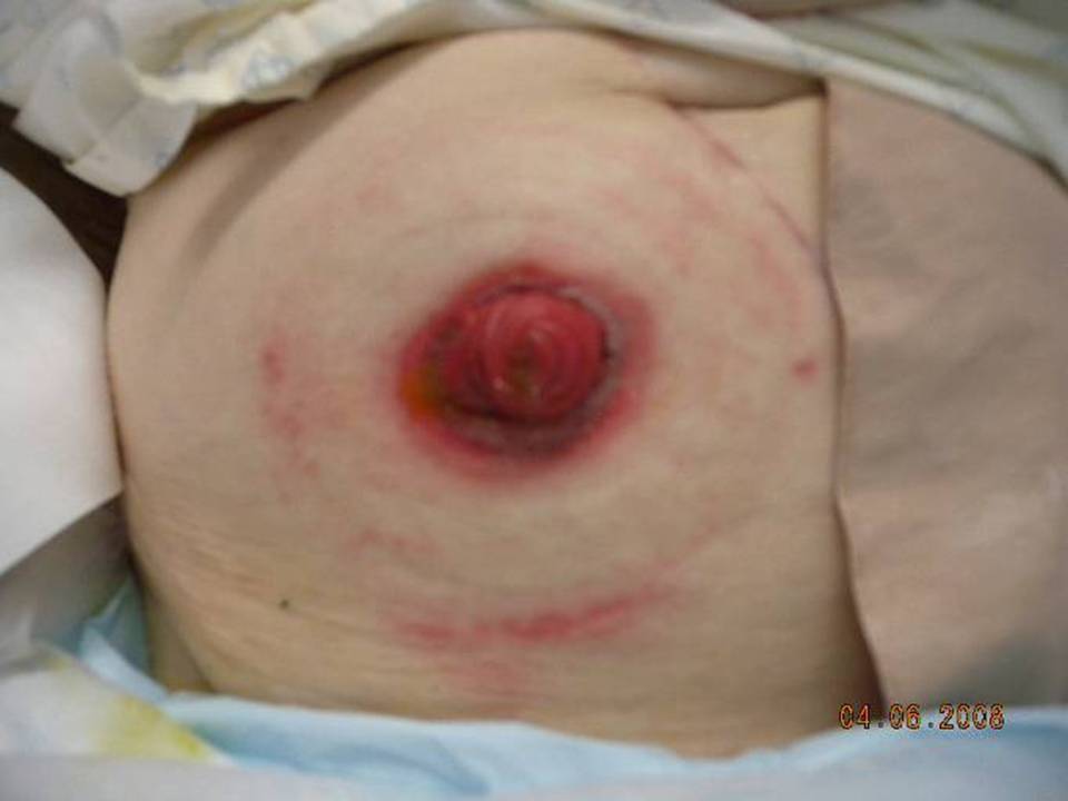 This suggests small bowel enzymes digesting the skin and this can lead to poor adherence of the stoma bag