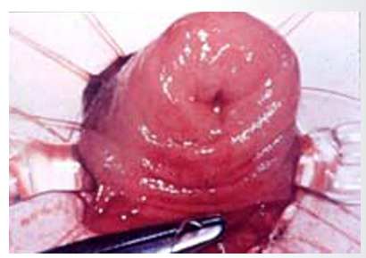 These are ususally spouted, have prominent mucosal folds, tend to be dark pink/red in colour, and are most common on the right side fot he abdomen