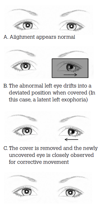 can identify if strabismus is present constantly (tropia) or if there is a tendency for there to be a squint when unaffected eye is covered (phoria)