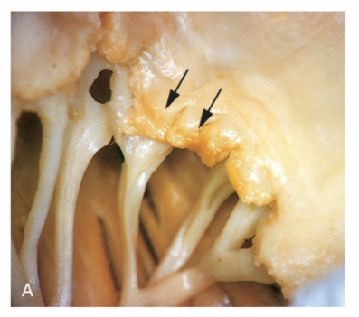 acute vegetation of the mitral valve with fibrosis of the chordae tendineae
