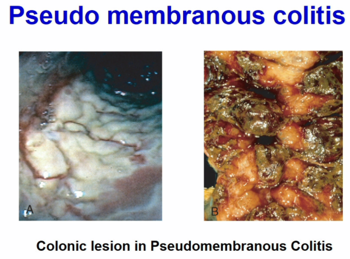 describe the pathogenesis of pseudomembranous colitis