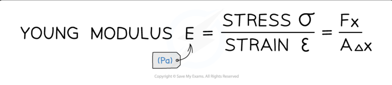What is the equation for young modulus and give the units.