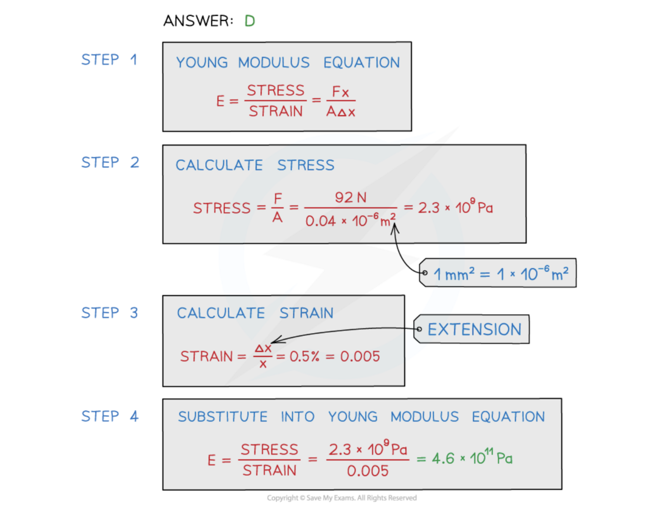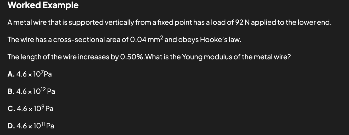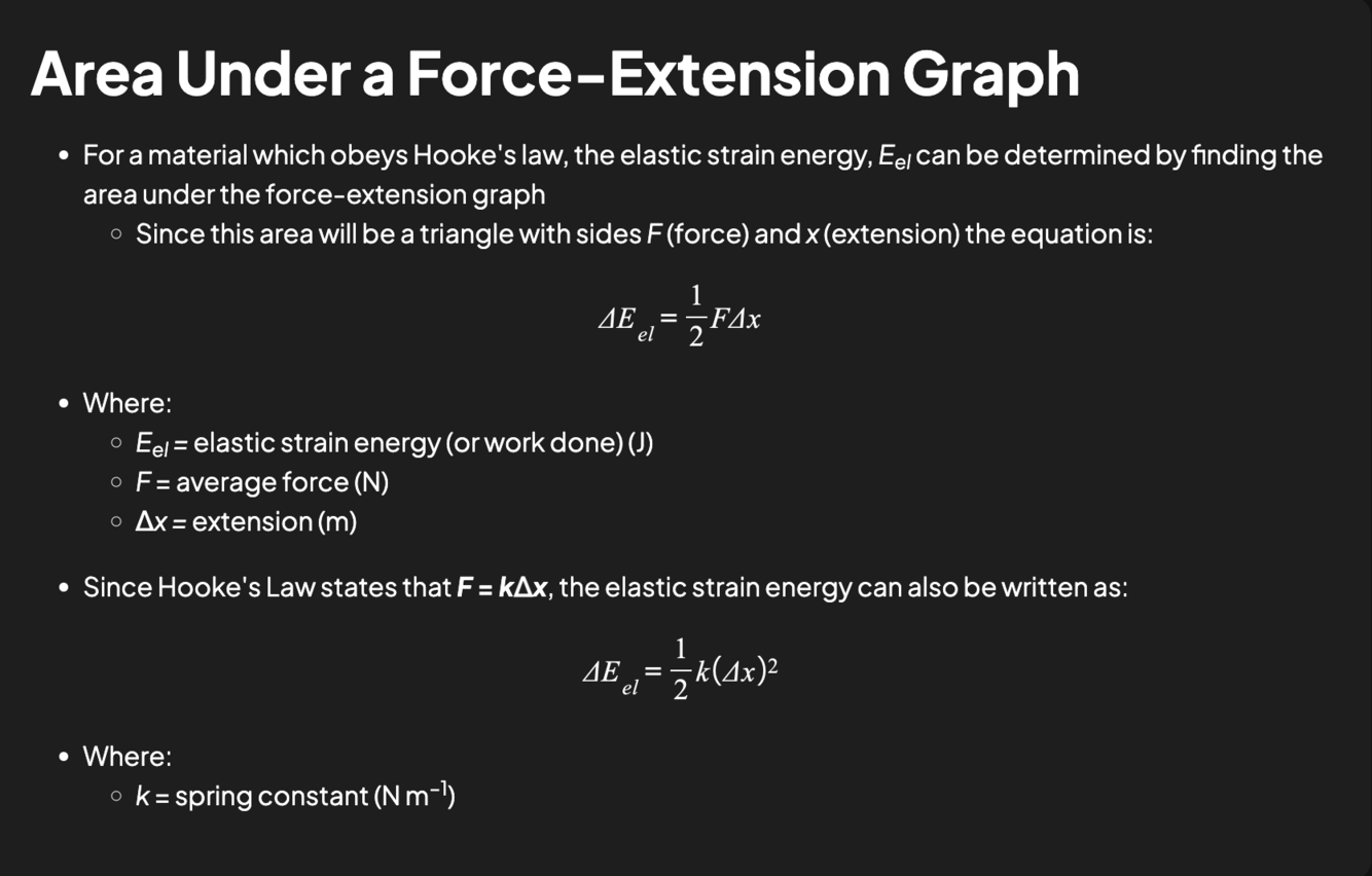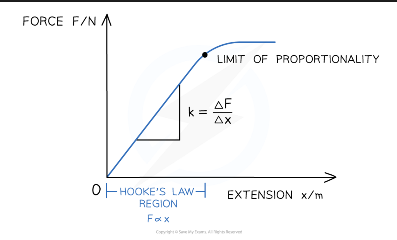 Draw a simple force-extension graph showing the Hooke’s Law region, and the calculation to find k, the spring constant.