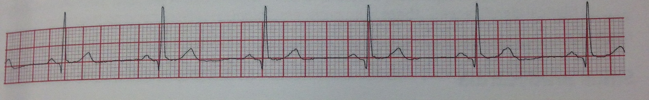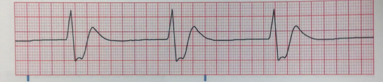 PR Interval: normal except during PVC where it is immeasurable