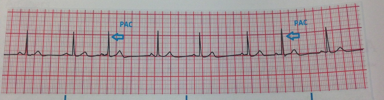Rhythm: Normal except during PAC