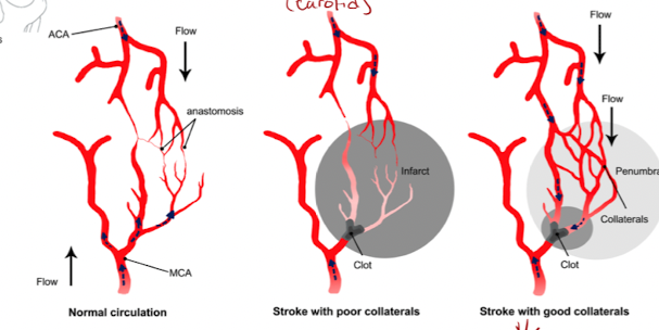 Pial collaterals maintain partial blood flow