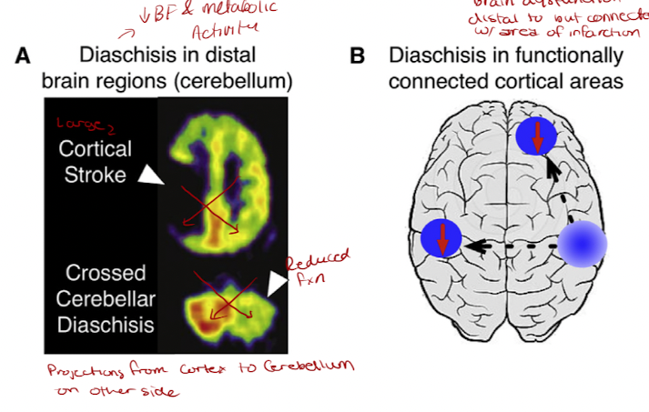 Brain damage and dysfunction that results from reduction in blood flow to the brain