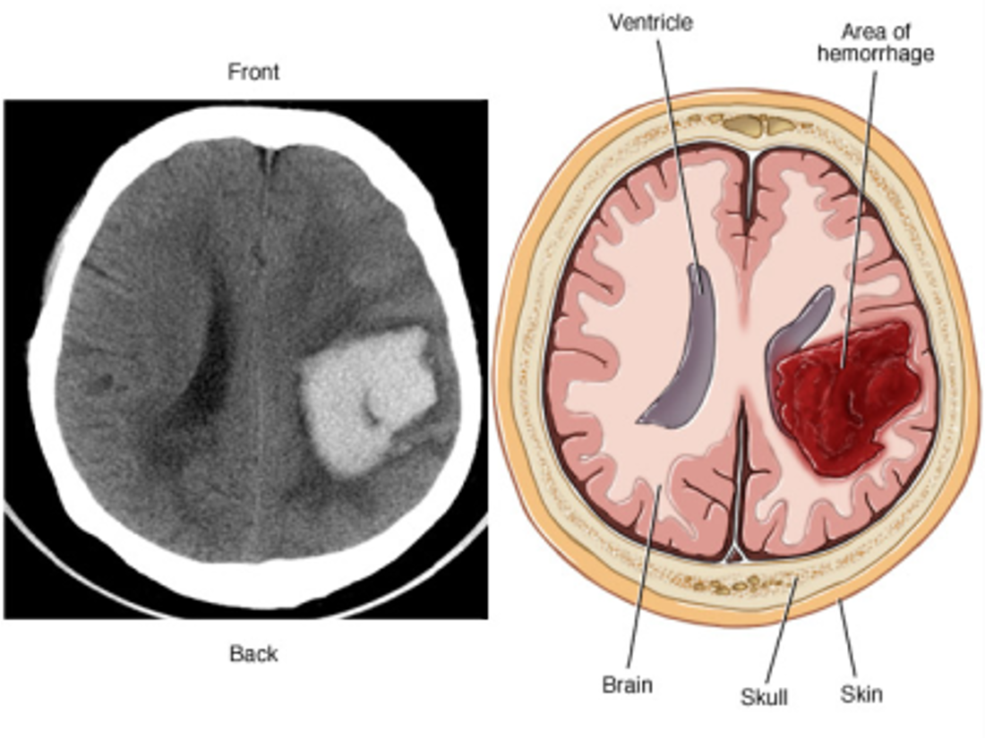 - Hemorrhage into the brain that results in death of brain cells