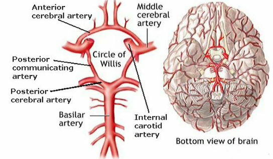 A loop of blood vessels where the ascending blood vessels from the heart meet at the bottom of the brain