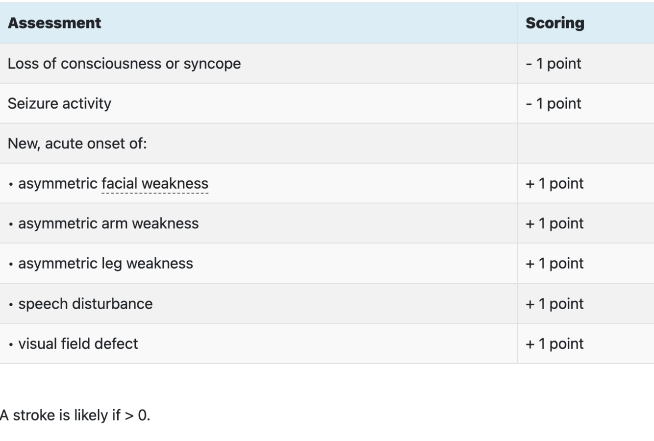 Although diagnosing a stroke can be straightforward or difficult, which screening tool can be used. by medics to identify likelihood of a stroke?