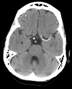 May be essentially normal :( but may show hyperdense middle cerebral artery for example