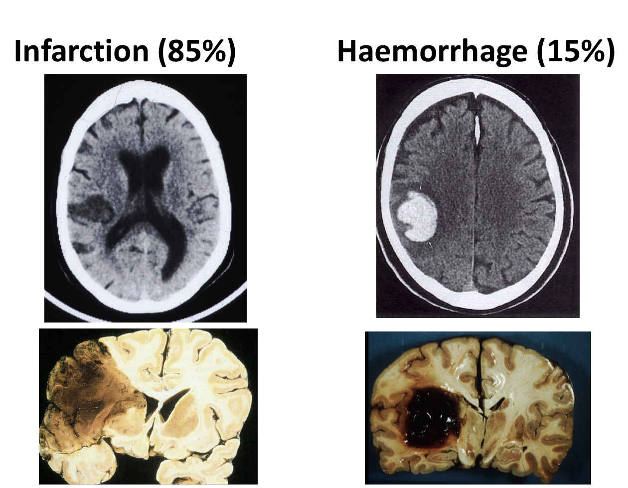 • if symptoms have resolved within a few hours (TIA), this will never be due to haemorrhage