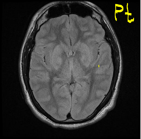 Also, if carotid stenosis was the cause, we would expect to see more ischemia throughout the entire left side of the brain, not just a small punctate lesion.