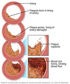 **vessels will FLEX but have a stiff plaque in them; the plaque can then rupture and you will get a thrombis with potential to break off leading to occlusions