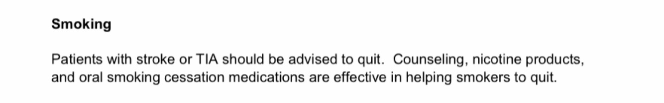 How can stroke be prevented in someone who smokes?