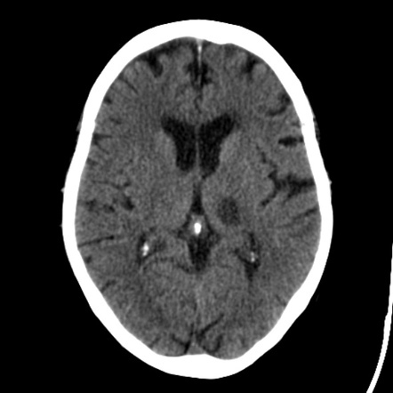 Small infarcts around basal ganglia, internal capsule, thalamus + pons