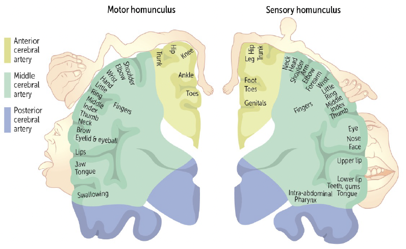 Deficits in bladder control most commonly result from a cortical stroke in the [vessel]