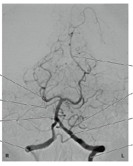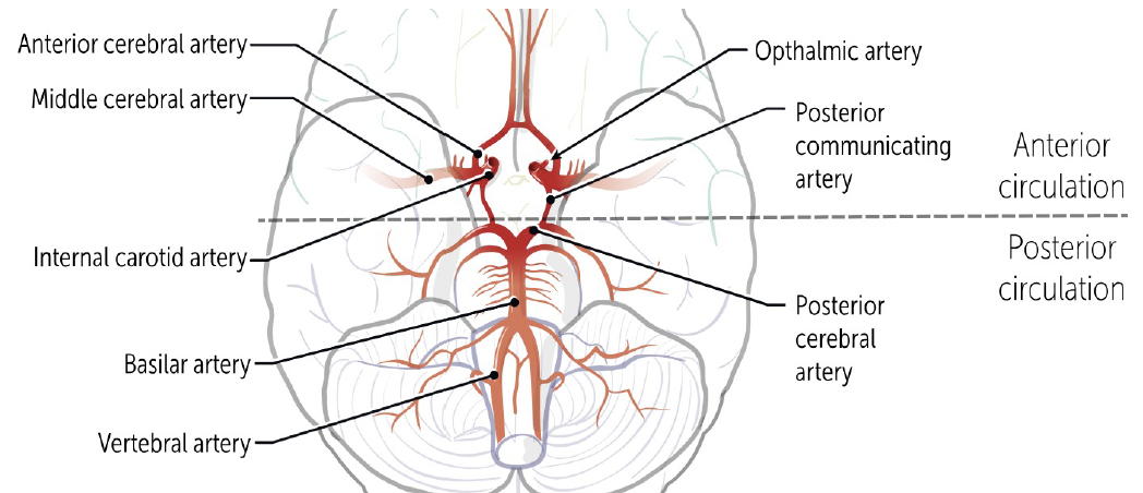 Hemianopsia is most commonly a result of cortical stroke in [vessel] or [vessel]