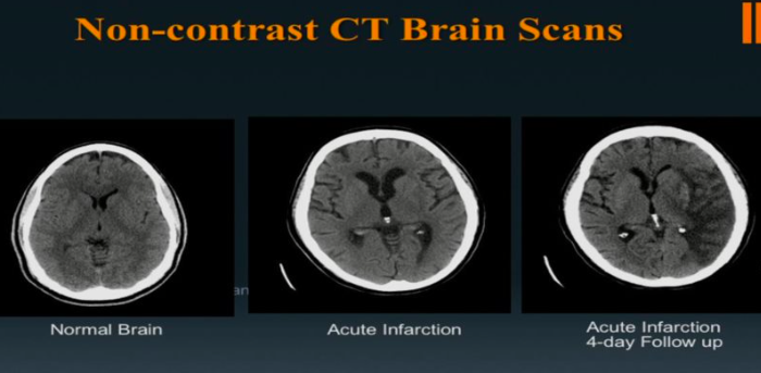 Head CT is very sensitive to intracranial bleeding/suspected stroke (and even small amounts!) (but an out of clinic- i.e. “I may have had a stroke yesterday but it resolved”- get an MRI)