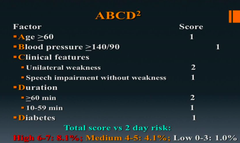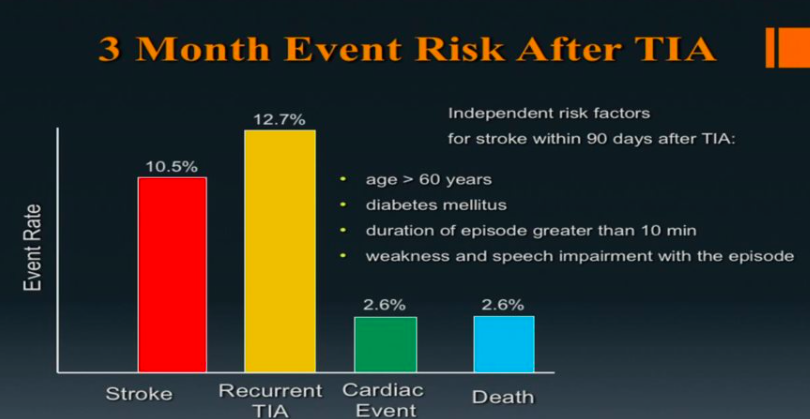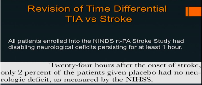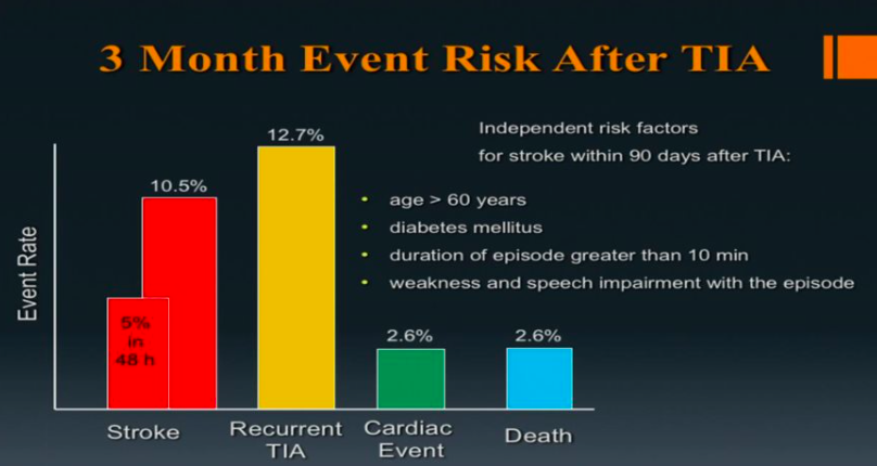 Now, anyone with a suspected TIA is admission for at least 2 days to determine etiology and prevent 2 day stroke risk