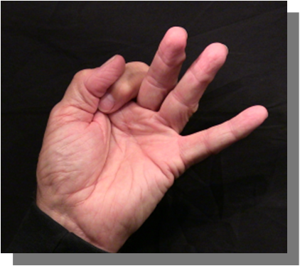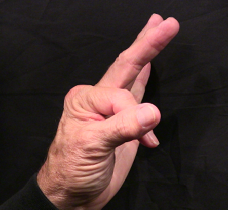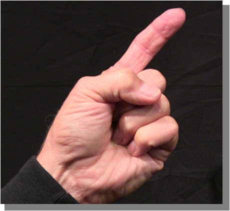Position: Closed fist position with the index finger full extension with the thumb flexed over the middle finger.