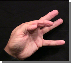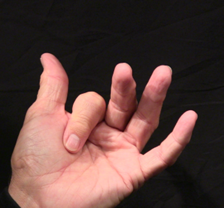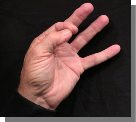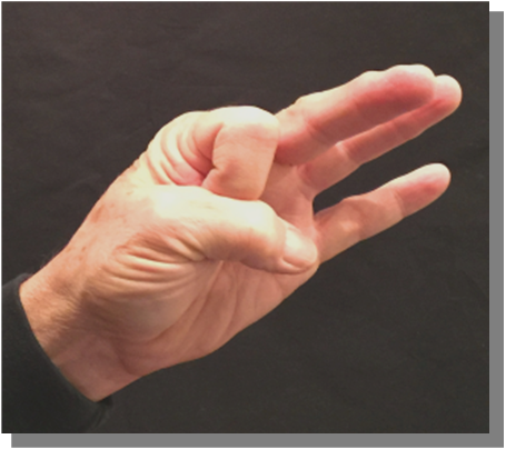 Position: Insert the distal phalanx of the thumb between the PIP joints of the middle and index finger.