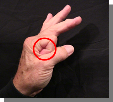 Position: Fully flexed index finger is angled across the ulna aspect of middle phalanx of the thumb.