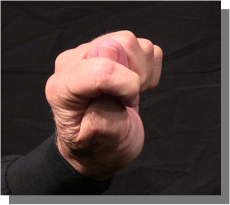 Position: Thumb DIP joint to the radial side of the fully flexed PIP joint of the index finger, also fully flexed at the MCP joint.