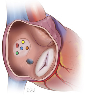 (Sit squarely in the LA so it can help the LV)