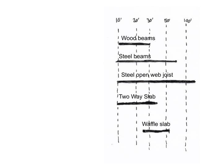 Match the structurals systems with the spans: