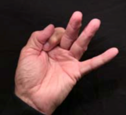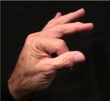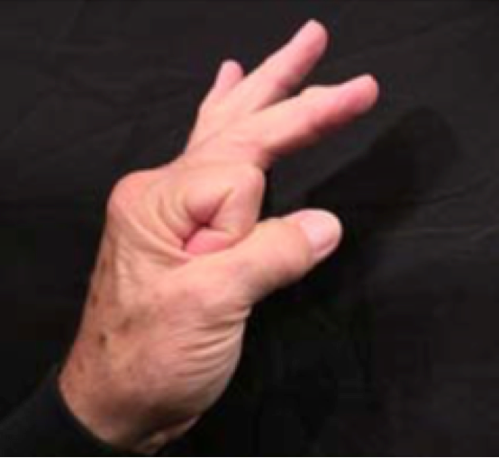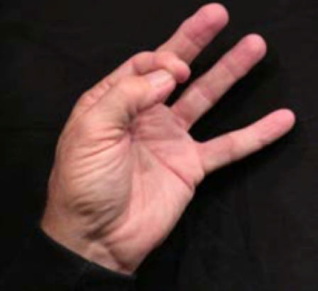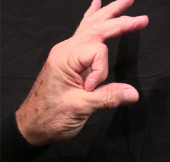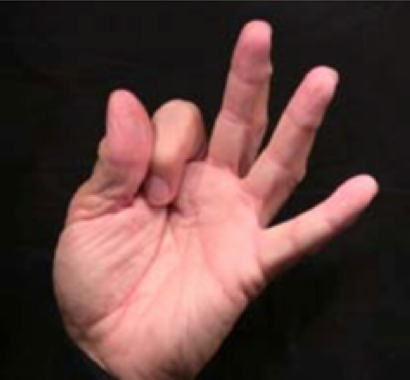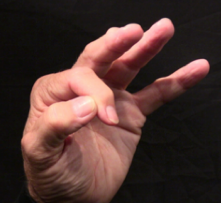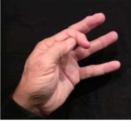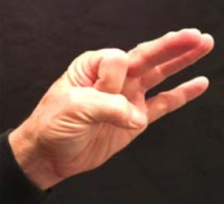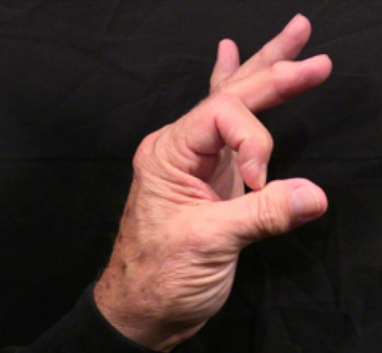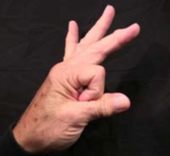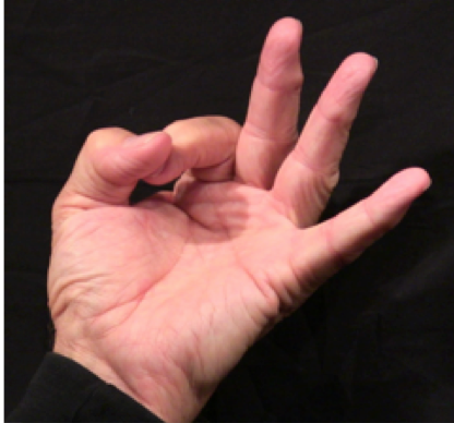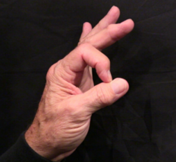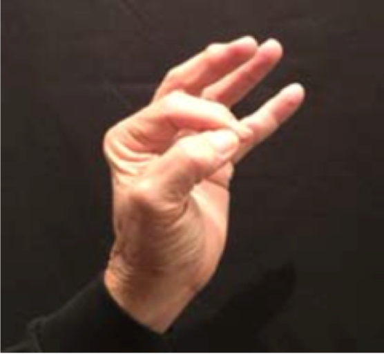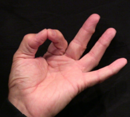 Position: Fully flexed index finger is cradled into the ulna aspect of the thumb.