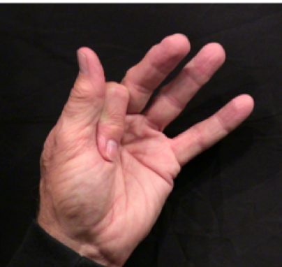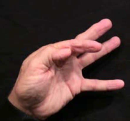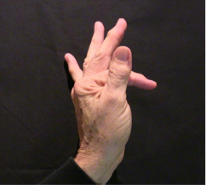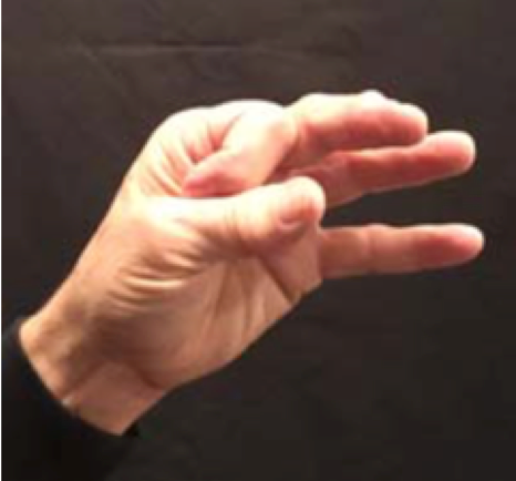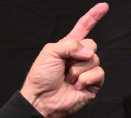 Position: Closed fist position with the index finger full extension and abduction with the thumb relaxed over the middle finger.