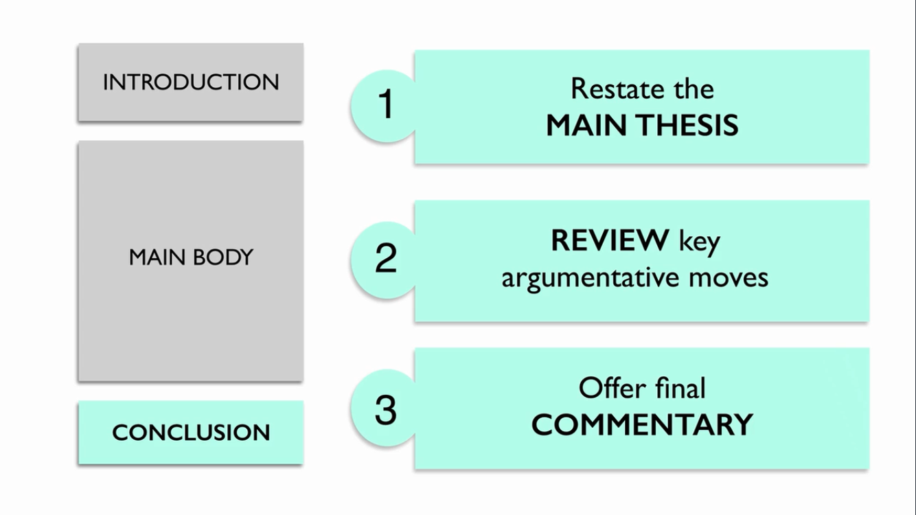 What should be included in the Conclusion of a standard argumentative essay?