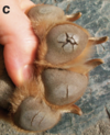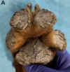 Clinical signs of ARCI (autosomal recessive congenital ichthyosis) in Golden Retrievers
