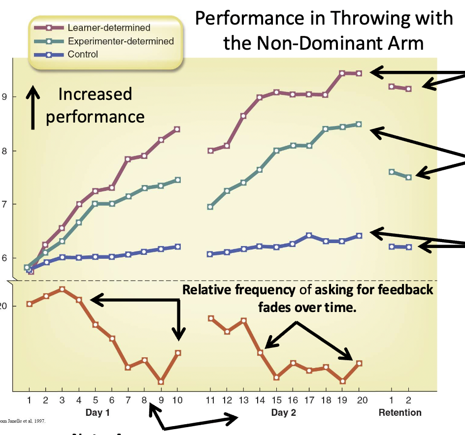 Learning and retention were highest in the learner-determined feedback group. They also self-selected to use tapered feedback.