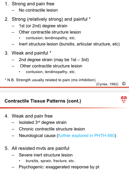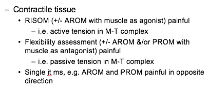 STTT - describe what movements would be painful for contractile tissues put on strain