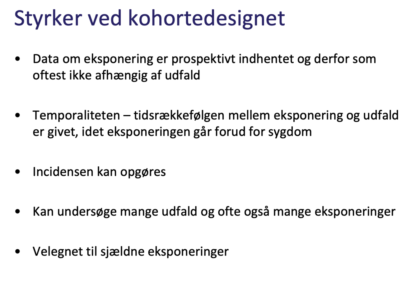 Kohorte - to grupper følges over tid. Der tages udgangspunkt i eksponeringen (alternative prævention) og hvilke udfald det kan have (VTE)